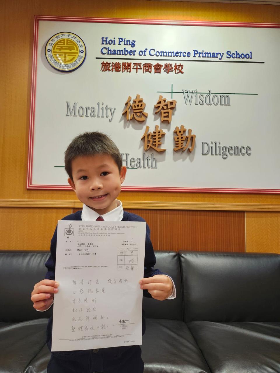 恭喜2C譚威洋獲得第77屆香港學校朗誦節普通話散文獨誦亞軍