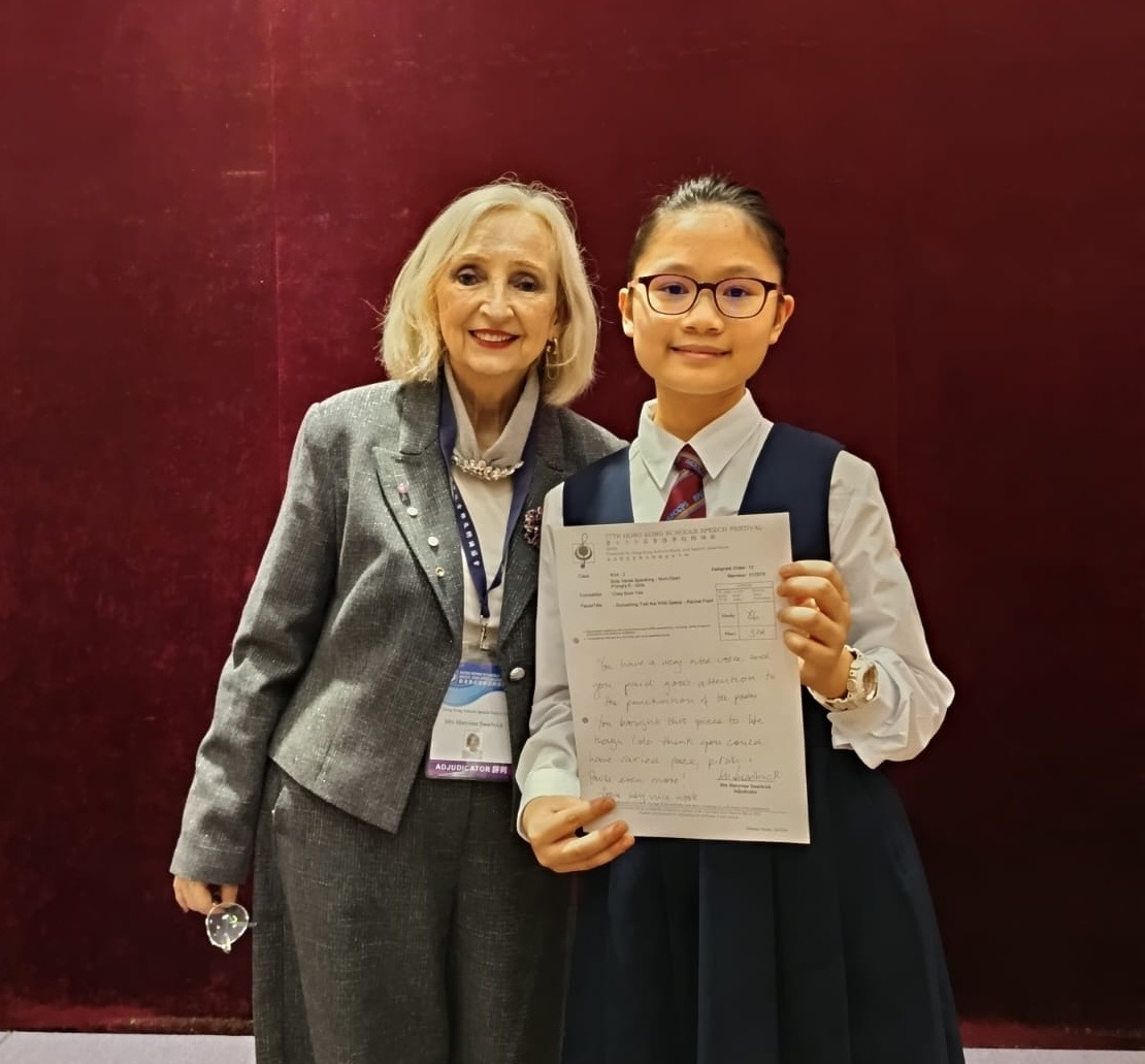 恭喜6D蔡心怡獲得第77屆香港學校朗誦節英詩獨誦季軍